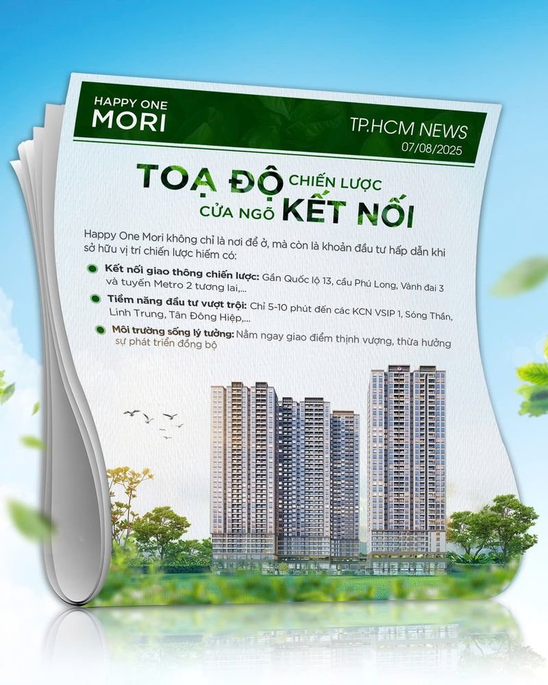 ✨ Tiềm năng đầu tư vượt trội: Cách các khu – cụm công nghiệp trọng điểm như VSIP 1, Sóng Thần, Linh Trung, Tân Đông Hiệp… chỉ 5-10 phút di chuyển, Happy One Mori trở thành lựa chọn lý tưởng cho các chuyên gia và kỹ sư làm việc tại đây. Điều này mở ra cơ hội đầu tư cho thuê hấp dẫn với nguồn cầu lớn và ổn định.